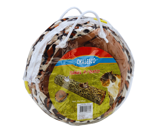 – Com uma bolinha de pelúcia pendurada com elástico, para seu pet abusar da criatividade ao brincar com o túnel;
